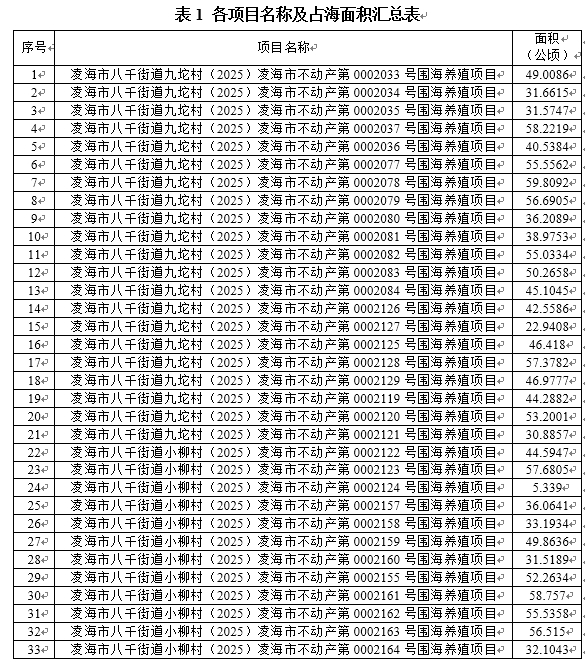 錦州信洋水產(chǎn)養(yǎng)殖有限公司委托,遼寧研海生態(tài)科技有限公司編制完成了錦州鹽場(chǎng)周邊海域33個(gè)圍海養(yǎng)殖項(xiàng)目環(huán)境影響報(bào)告書及公眾參與說(shuō)明,項(xiàng)目列表見表1。根據(jù)《環(huán)境影響評(píng)價(jià)公眾參與辦法》(生態(tài)環(huán)境部令 4號(hào))要求,現(xiàn)對(duì)環(huán)評(píng)報(bào)告書全本及公眾參與說(shuō)明進(jìn)行報(bào)批前公開。